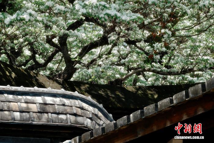 福州坊巷百年流苏花盛开迎客